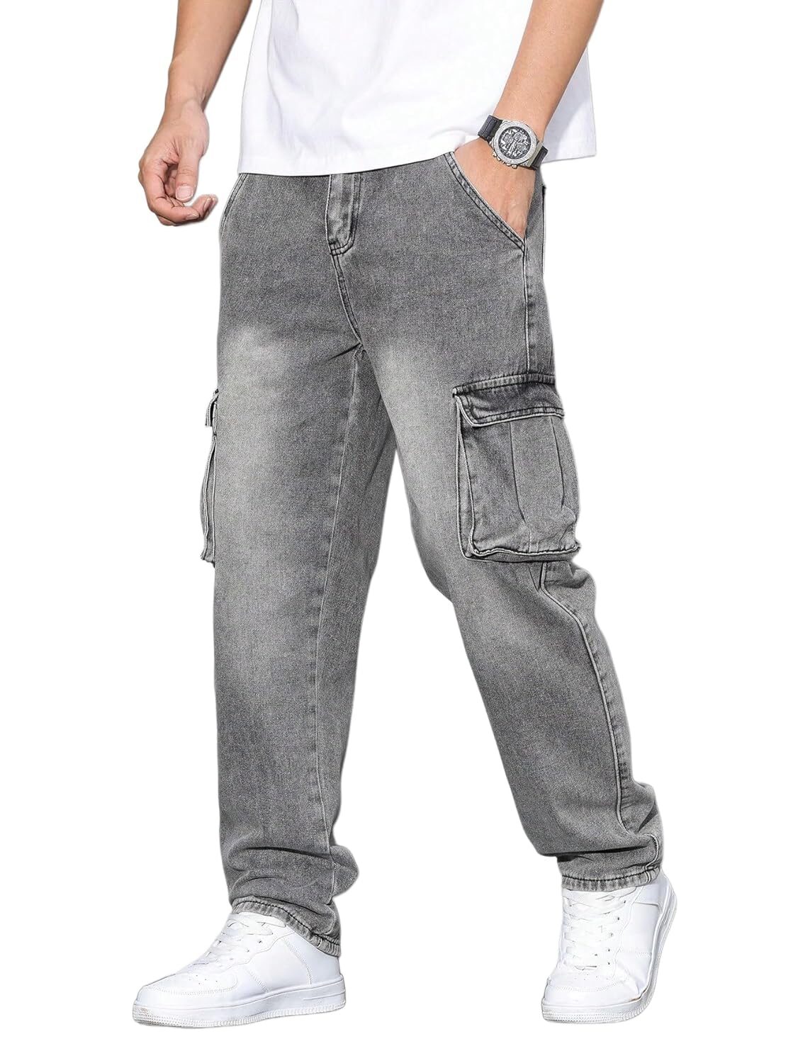 An ideal choice for men looking for a stylish cargo or cargo jeans that fits both casual wear and utility needs.
