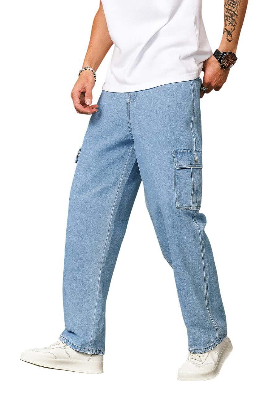 An ideal choice for men looking for a stylish cargo or cargo jeans that fits both casual wear and utility needs.