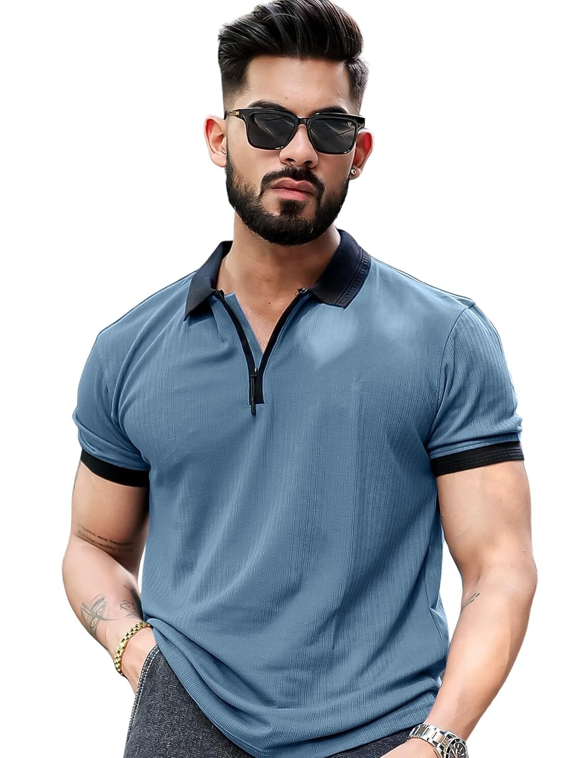 This men’s polo or colored t-shirt is designed to offer a smart casual look suitable for semi-casual occasions.