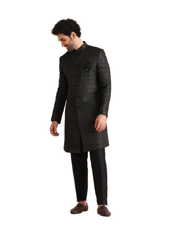 This men’s sherwani is crafted to enhance classic Indian wear by combining refined tailoring in one distinguished outfit.
