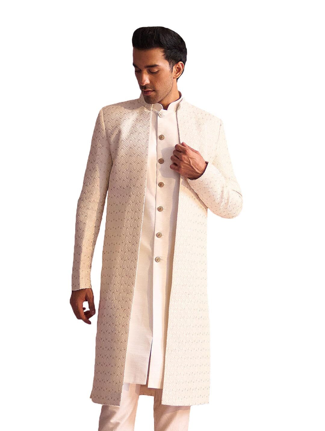 Suitable for festive gatherings, this sherwani is easy to pair with accessories and designed to deliver lasting appeal throughout the event.