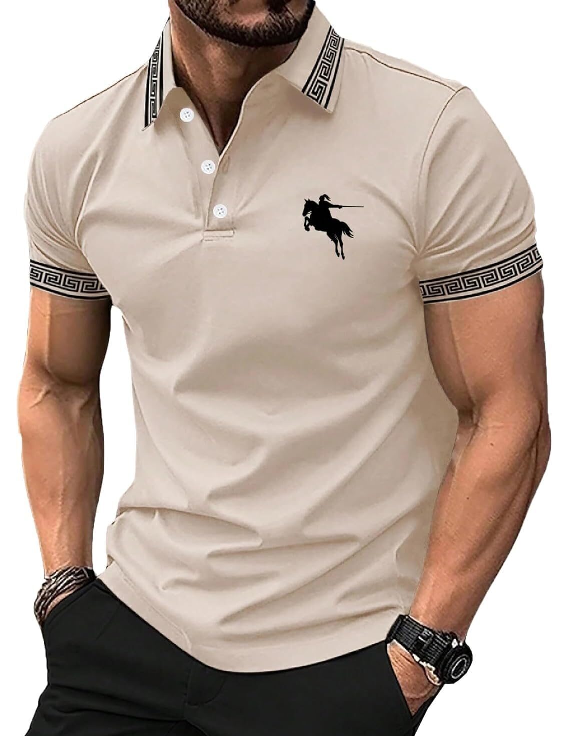 This men’s polo or colored t-shirt is designed to offer a clean appearance suitable for casual outings.