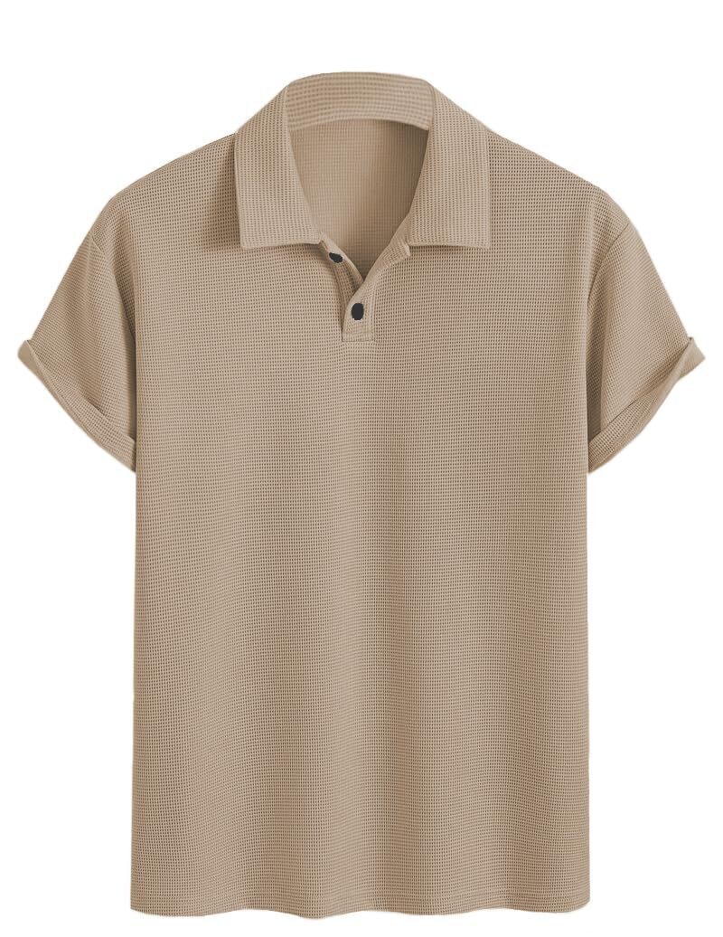 This men’s polo or colored t-shirt is designed to offer a clean appearance suitable for casual outings.